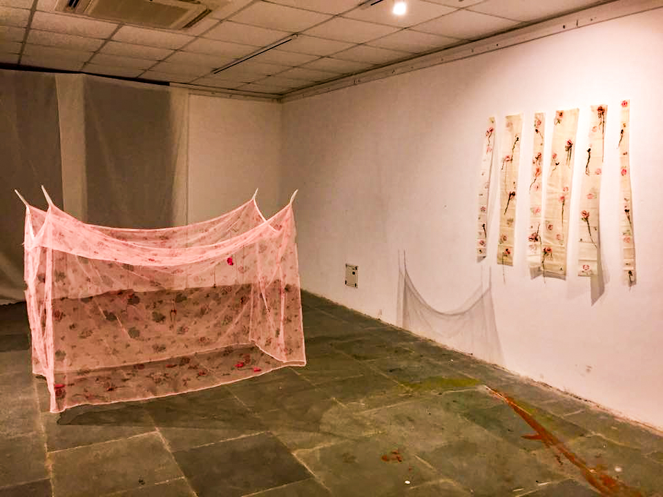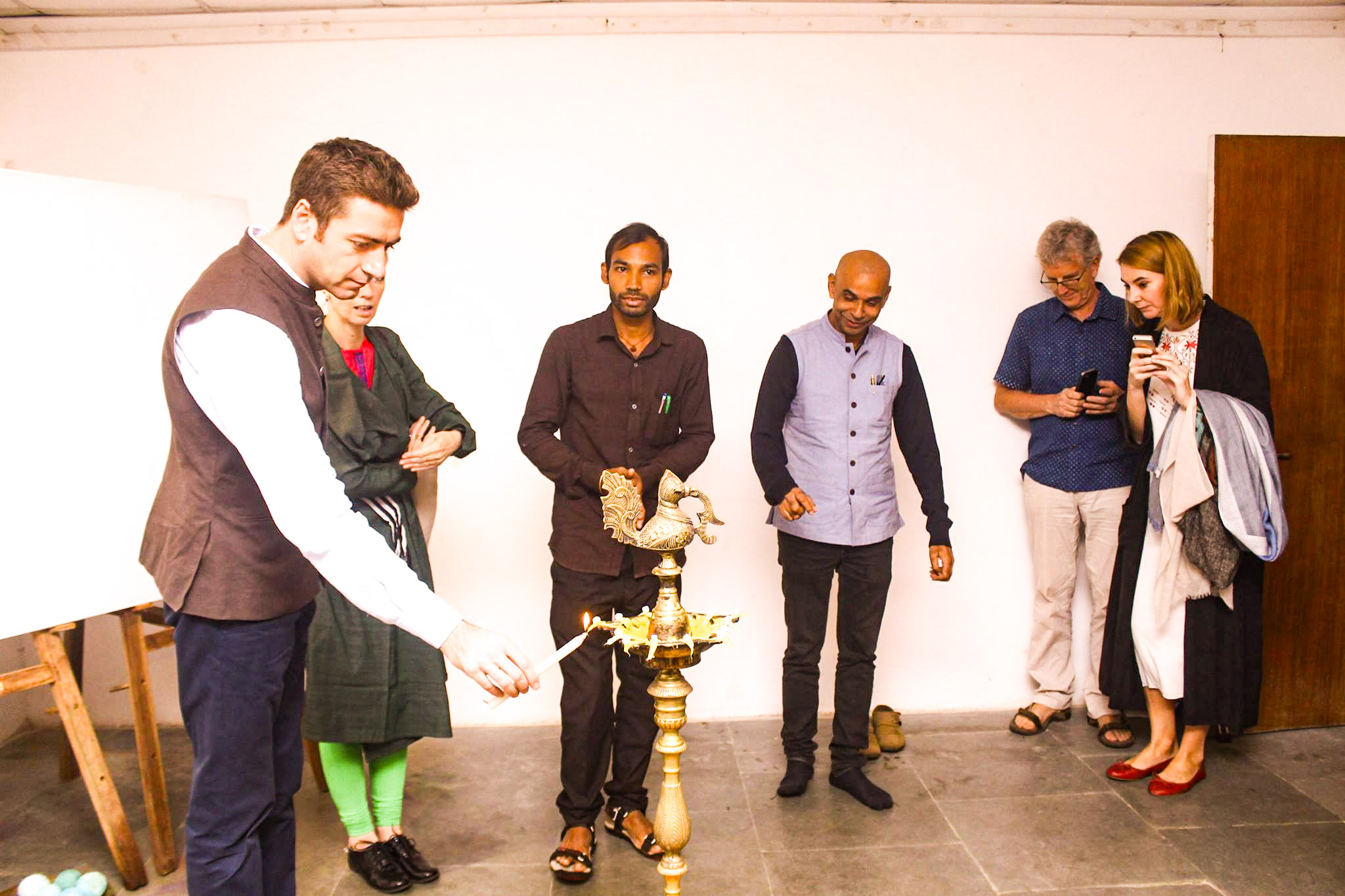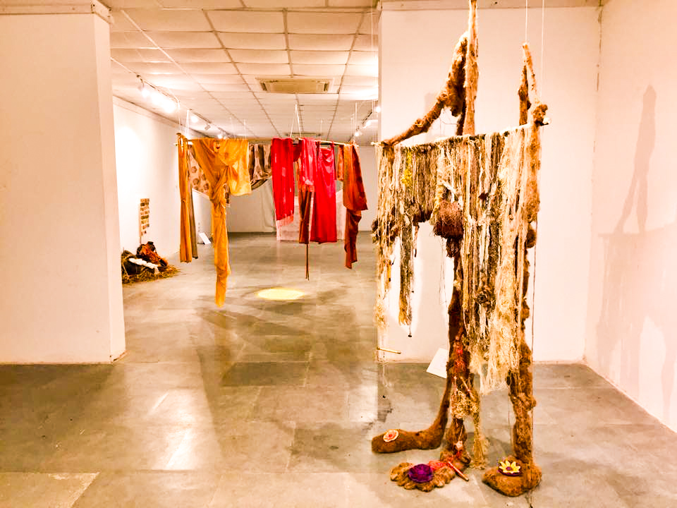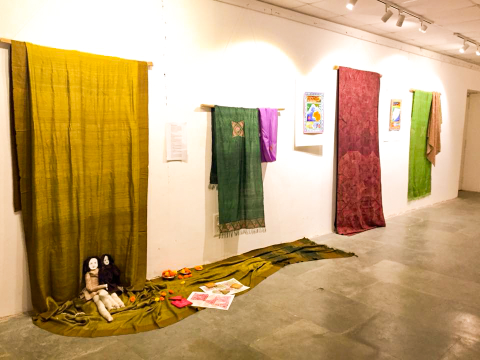 The concepts of exchanging skills and perceiving knowledge from local textile art practice implemented in their art practices. It was an artistic journey to explore and the making process of the artist’s works were documented by photographer Biswajit Sahani. He is one of the talented photographers as well as an artist.